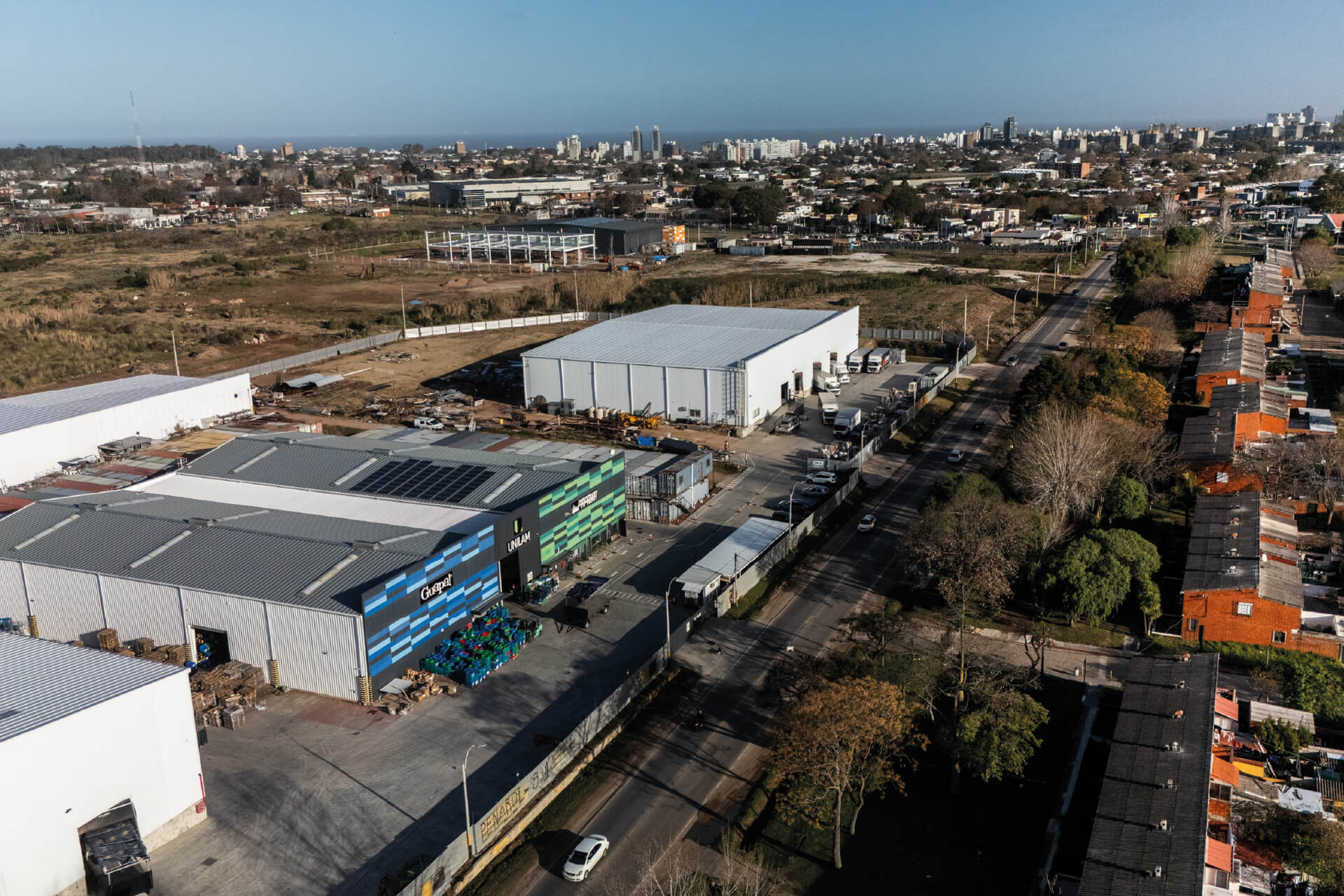 Estudio de impacto territorial para la empresa UNILAM S.A., ubicada en una zona heterogénea de Montevideo, caracterizada por una mezcla de infraestructuras, baldíos, viviendas y diversas actividades comerciales e industriales. El entorno es una zona en transformación, con el objetivo de integrarse plenamente en la estructura de la ciudad.